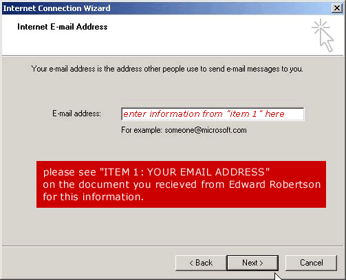 4. Enter the email address (item1) specified on the documentation from Edward Robertson: